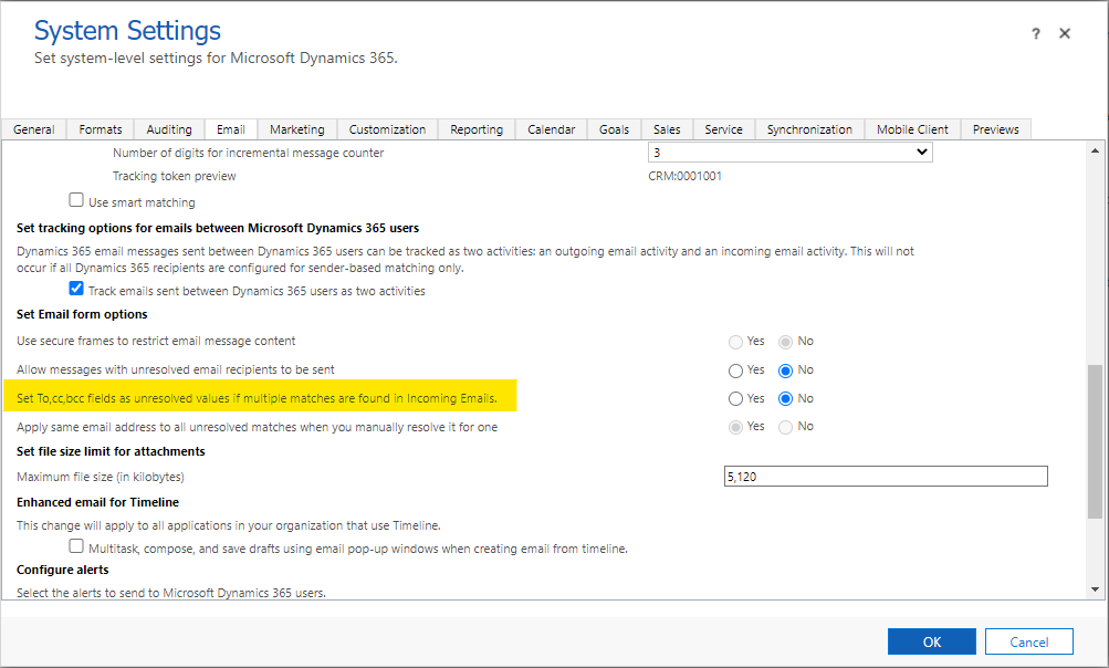 In Microsoft Dynamics 365, email resolution usually works automatically.