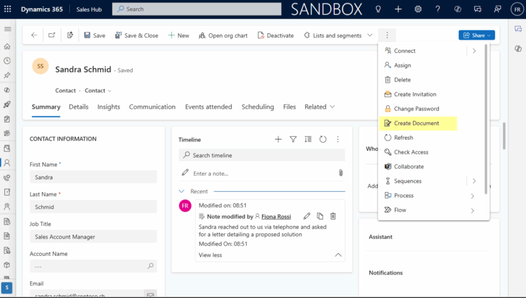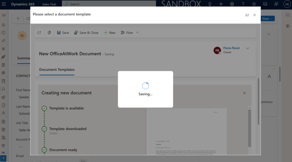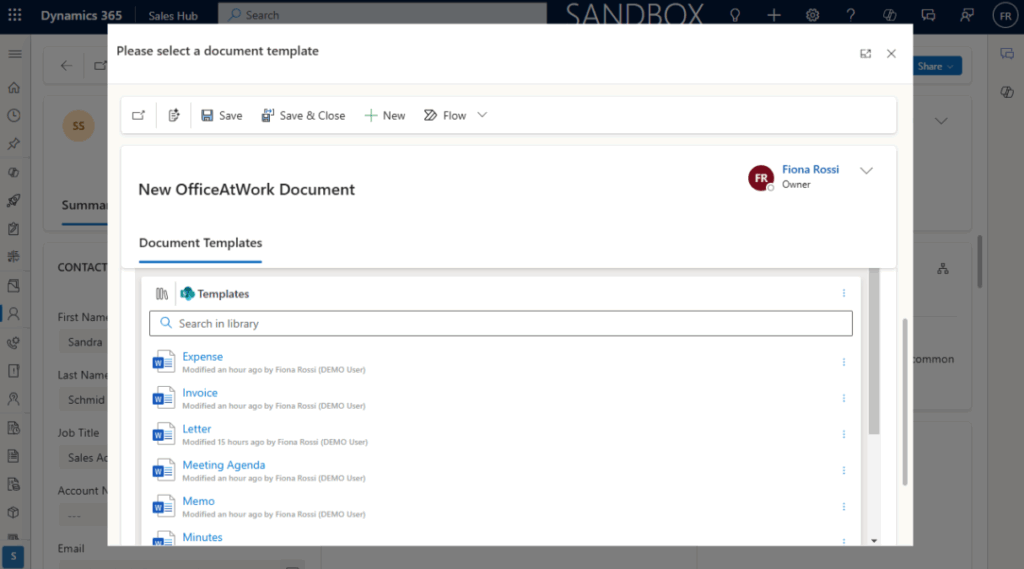 Das Add-on integriert sich vollständig in Deine Microsoft-Dynamics-365-Umgebung. Mit nur wenigen Klicks kannst Du Deine bestehenden officeatwork-Vorlagen verwenden, ohne Anwendungen wechseln zu müssen. Alles geschieht zentral – effizient und benutzerfreundlich.